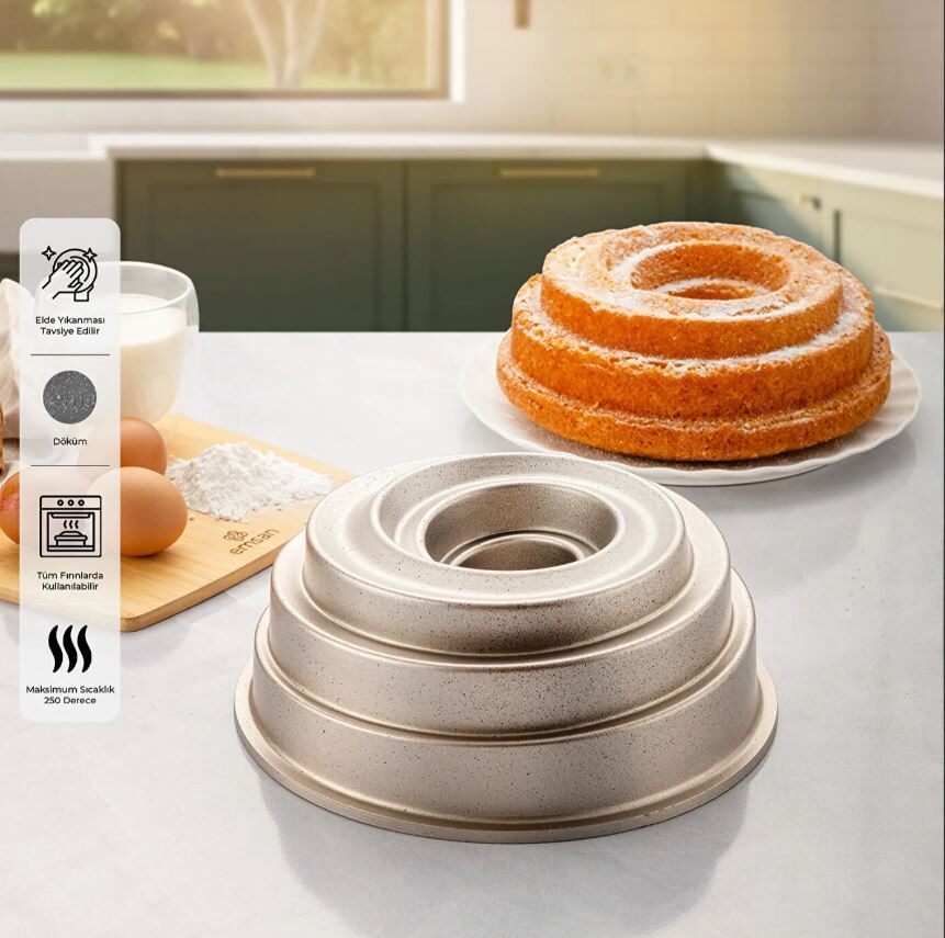 katlı pasta hazırlayanların vazgeçilmezi hâline geldi. Emsan Pandispanya Kek Kalıbı Light Gold