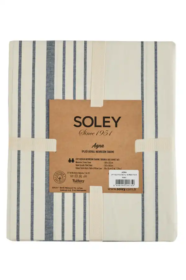 Yorucu bir günün ardından huzurlu bir uykuya dalmak için doğru nevresim takımını seçmek önemlidir. Soley Agna %100 Pamuk İpliği Boyalı Çift Kişilik Nevresim Takımı, hem şık tasarımı hem de doğal içeriğiyle size benzersiz bir uyku deneyimi sunar.