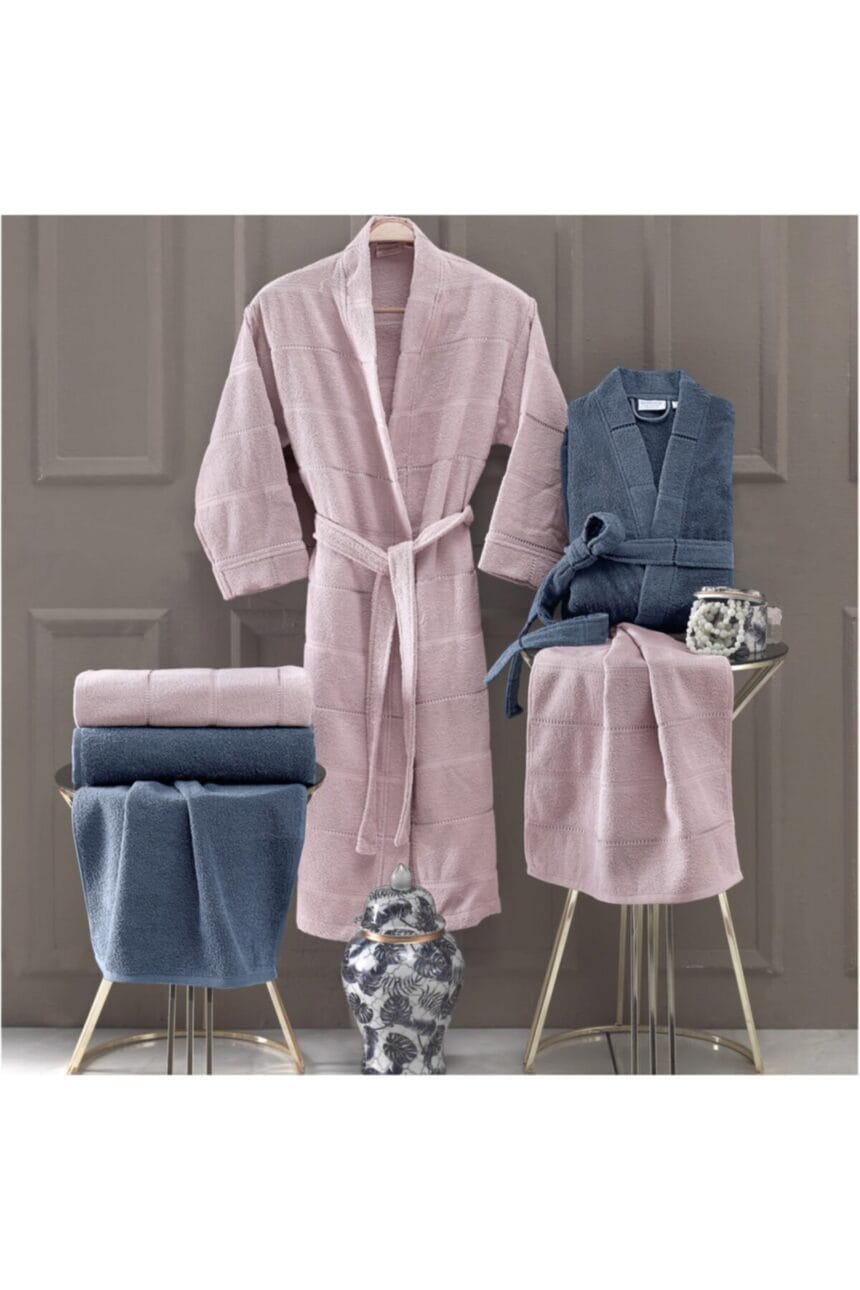 Altınbaşak Pure Soft Pamuk Aile Bornoz Seti Lila – Lacivert Özellikleri