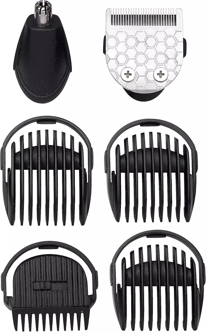 Çok Yönlü Başlıklar: Bu 6'sı 1 arada tıraş makinesi, Rotary Burun/Kulak başlığı ve çeşitli tarak başlıkları ile birlikte gelir. Stubble (Kirli Sakal) Tarak Başlığı (1mm – 3.5mm) ve 3x Sakal Tarak Başlığı (5-7mm) gibi başlıklar, tüm tıraş ihtiyaçlarınızı karşılar.