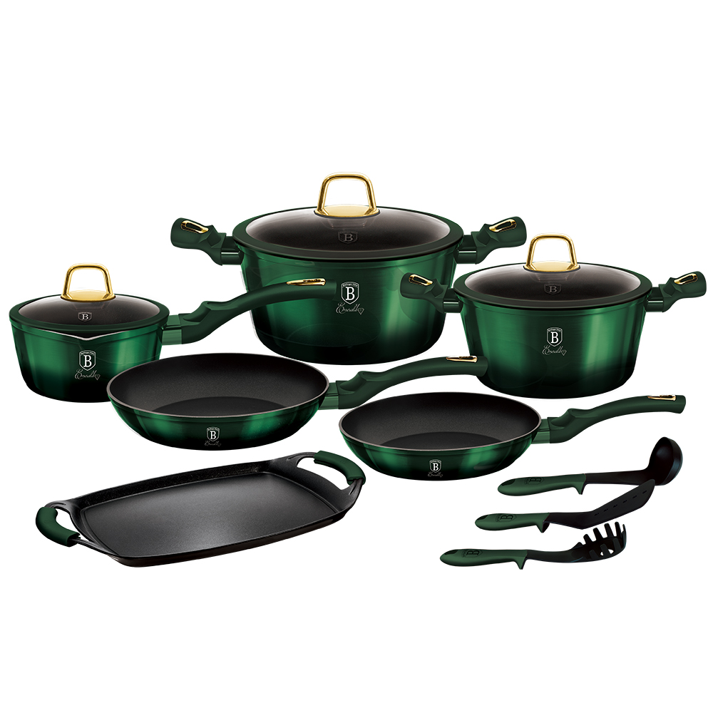 12+2 parça tencere seti5.999.056.798.373• Malzeme: dövme alüminyum• Renk: siyah gölgeli metalik zümrüt yeşili• Tava Ø22*4,5 cm 1,3L• Tava Ø24*4,8 cm 1,7L• Kapaklı Tencere Ø16*7,5 cm 1,7L• Kapaklı Tencere Ø20*10,4 cm 2,5L• Kapaklı Tencere Ø24*11,8 cm 4,1L• Izgara tepsisi 36*23 cm• 3 adet mutfak aleti (çorba kepçesi, spagetti kepçesi, oluklu döndürücü)ÜCRETSİZ 2 ADET ISIYA DAYANIKLI SİLİKON SAP• Dövme alüminyum kalın cidarlı gövde malzemesi• 3 kat dayanıklı yapışmaz titan kaplama• Fırına dayanıklı ızgara plakası• Ergonomik Yumuşak dokunuşlu tutamak• Altın kaplamalı ve silikon halkalı s/s düğmeli T-cam kapak• İndüksiyonlu ocak dahil tüm ocak türleri için uygundur• Verimli ve hijyenik araçlar• Zarif tasarım• Metalik dış renk• Asılabilir• ECO dostu PFOA, KURŞUN, Kadmiyum içermez