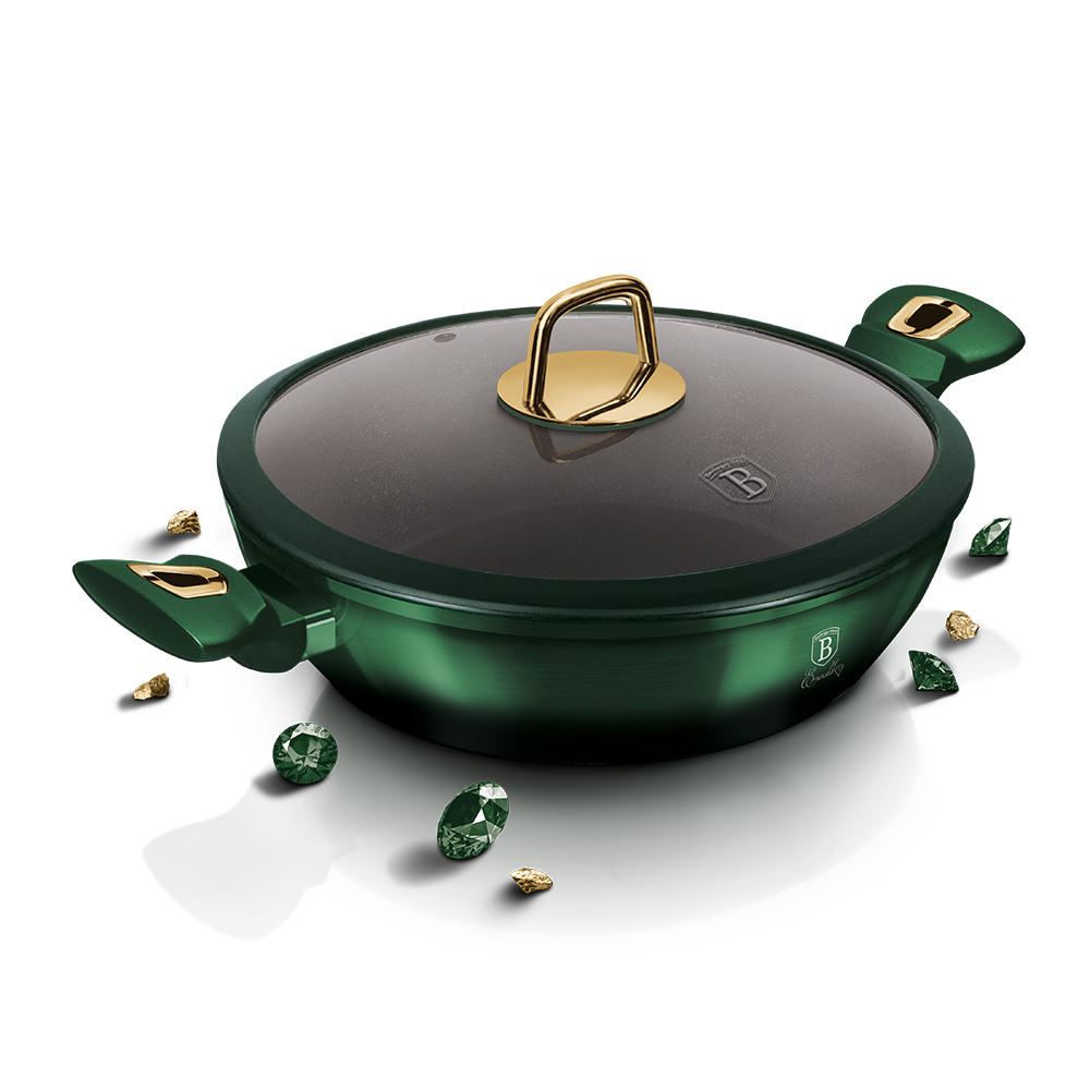 Kapaklı sığ tencere, 28 cm5.999.056.798.311• Malzeme: dövme alüminyum• Renk: siyah gölgeli metalik zümrüt yeşili• Kapaklı sığ tencere Ø28*7,5cm 3,8LBERLİNGER HAUS TARAFINDAN TESCİLLİ TASARIM!!!• Dövme alüminyum kalın cidarlı gövde malzemesi• 3 kat dayanıklı yapışmaz titan kaplama• Ergonomik Yumuşak dokunuşlu tutamak• Metalik dış renk• Altın kaplamalı ve silikon halkalı s/s düğmeli T-cam kapak• İndüksiyonlu ocak dahil tüm ocak türleri için uygundur• Asılabilir• ECO dostu PFOA, KURŞUN, Kadmiyum içermez