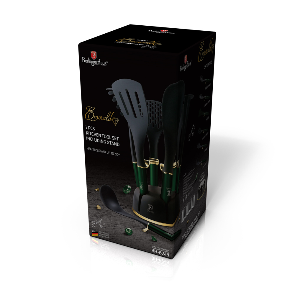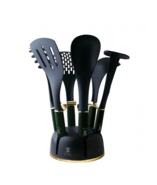 7 Parça standlı yemek servis seti5.999.108.402.647• Renk: zümrüt-altın• Çorba kepçesi 1 adet• Yemek kaşığı 1 adet• Ezici 1 adet• Spagetti kepçesi 1 adet• Oluklu çevirici 1 adet• Skimmer 1 adet• Durmak• Şık• ECO dostu PFOA, KURŞUN, Kadmiyum içermez 360°