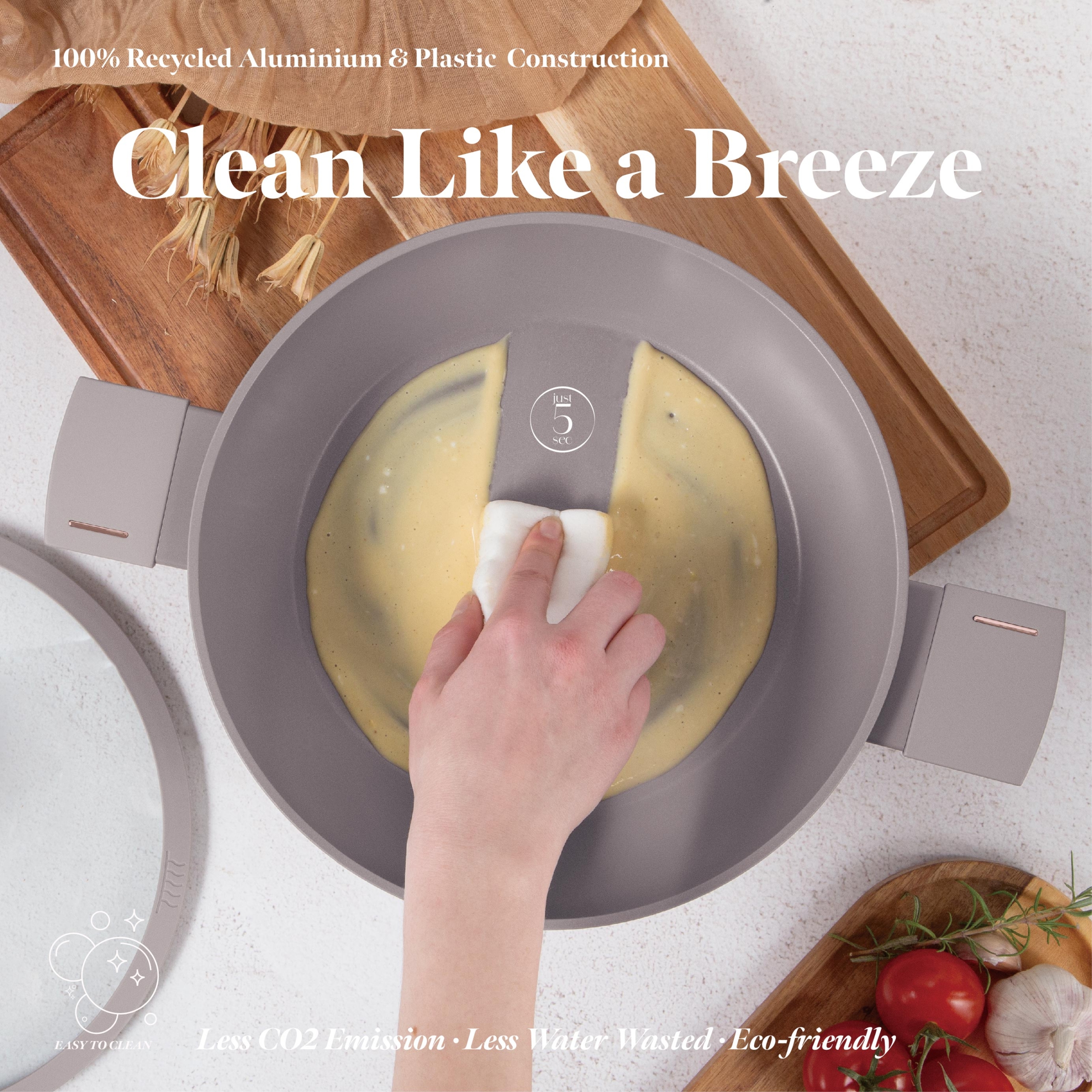 Temizlemesi kolay yüzeyi ve bulaşık makinesinde yıkanabilirliği mutfakta zaman kazandırır.Alçak kılıfı (3,8 L) ile Taupe Koleksiyonu, mutfak işleri sırasında pratik ve şık bir yardım sağlıyor. Çevre dostu malzemelerden üretilen tabanın temizlenmesi kolaydır ve her türlü ocakta kullanılabilir. Taupe Collection ürün grubunun bir parçası olarak diğer ürünlerle mükemmel uyum sağlayarak mutfakta tekdüze bir görünüm sağlar.