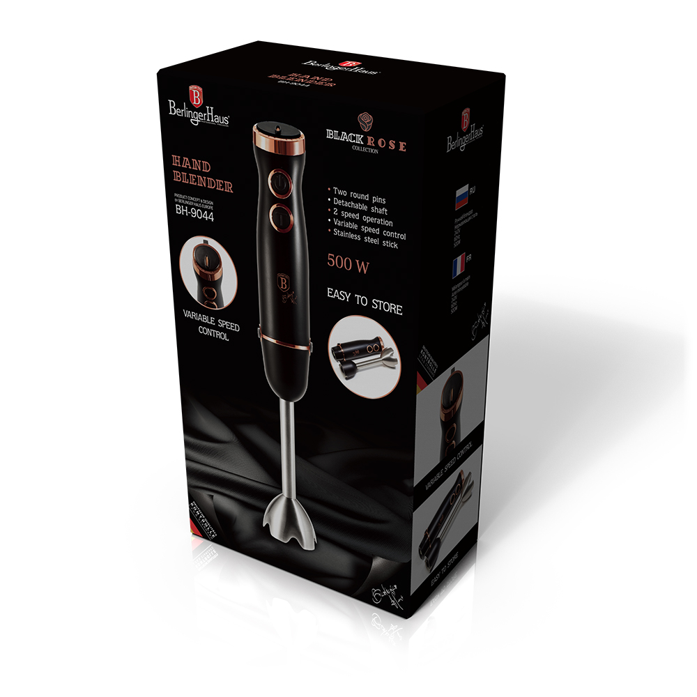 El blenderiMalzeme: Paslanmaz çelik/plastikVoltaj: 220-240V 50-60HzGüç: 500WRenk: Siyah ve Pembe altın8/10 Paslanmaz çelik çubuk2 Hızlı çalıştırmaKolay saklamaTurbo işleviSökülebilir mil