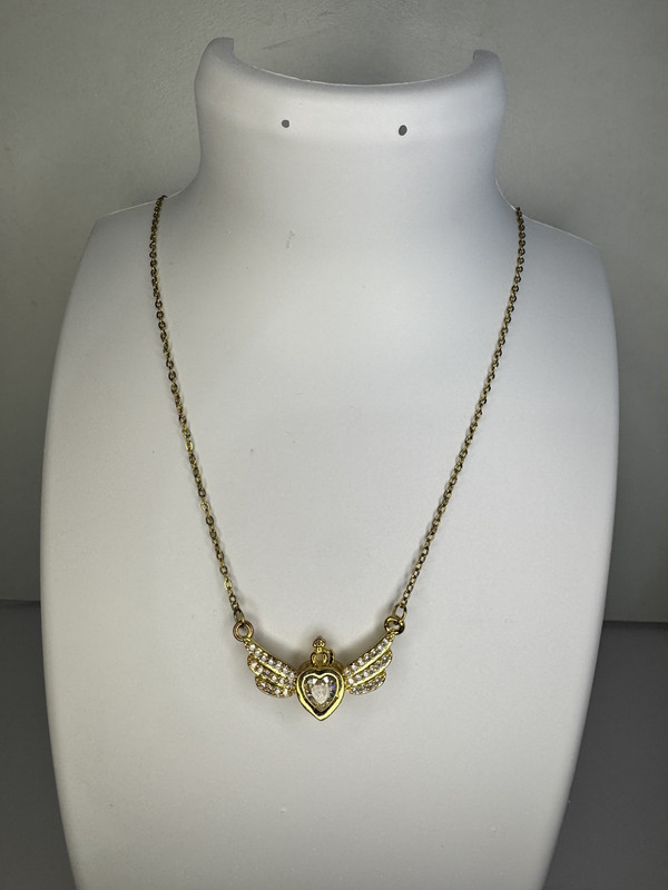 Çelik Altın Renkli Taşlı Melek Kanatlı Kalp Kolye