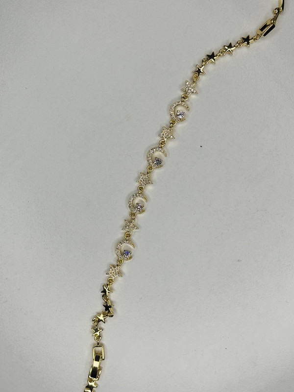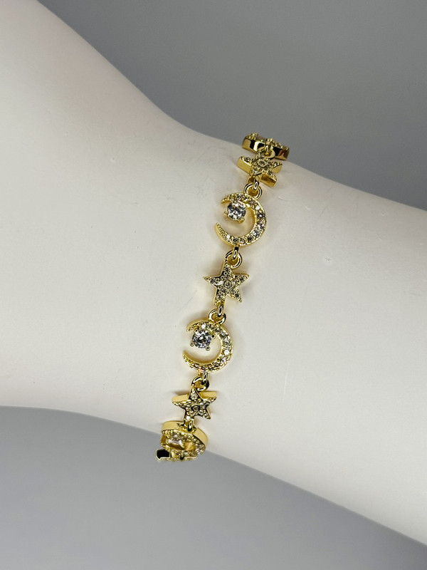 Çelik Ay ve Yıldız Figürlü Taşlı Gold Bileklik – Parlak Paslanmaz Kadın Takı, Kararma Yapmaz Zarif Model