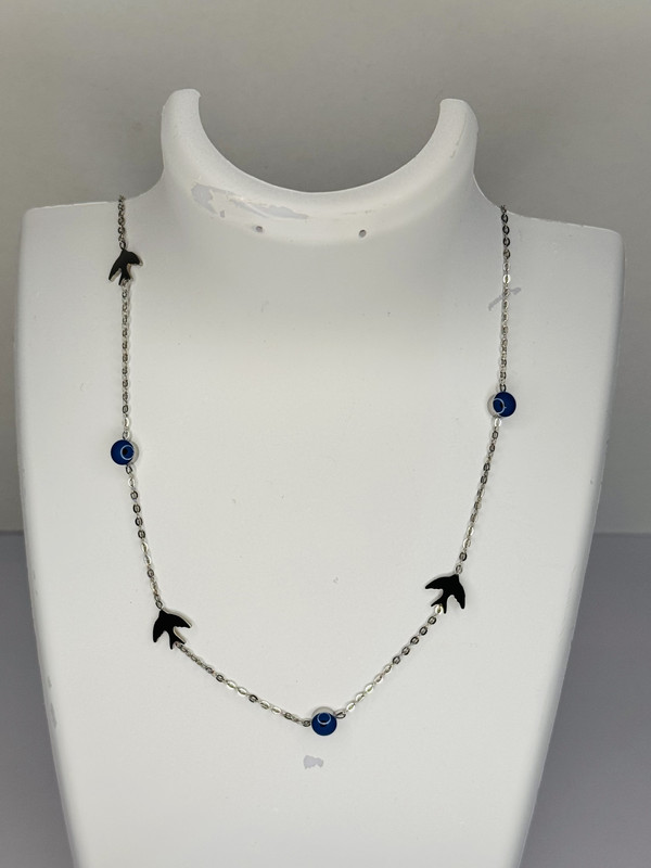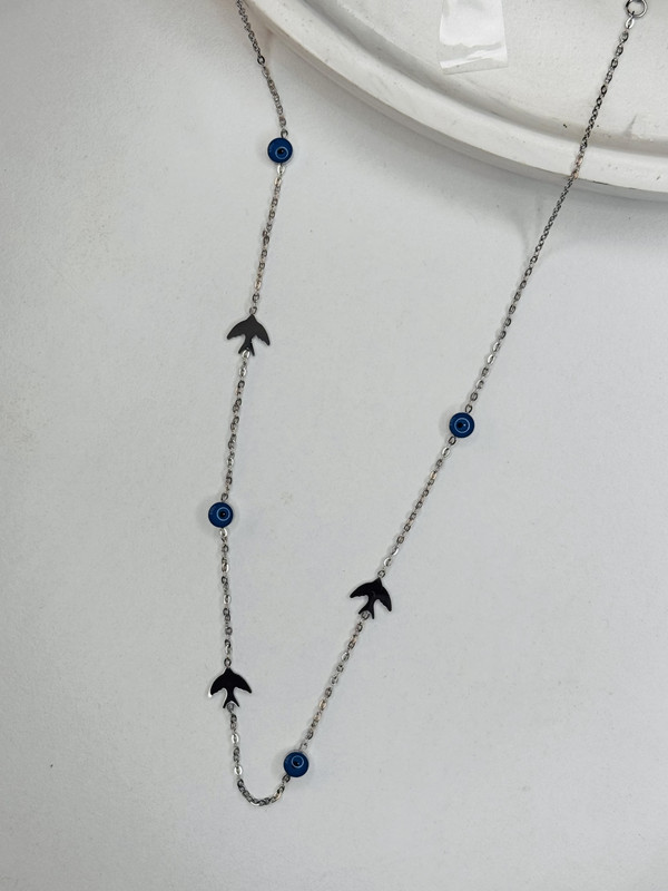 Çelik Nazar Boncuklu Kuş Figürlü Silver Kolye – Paslanmaz Kadın Kolye, Kararma Yapmaz Şans Takısı