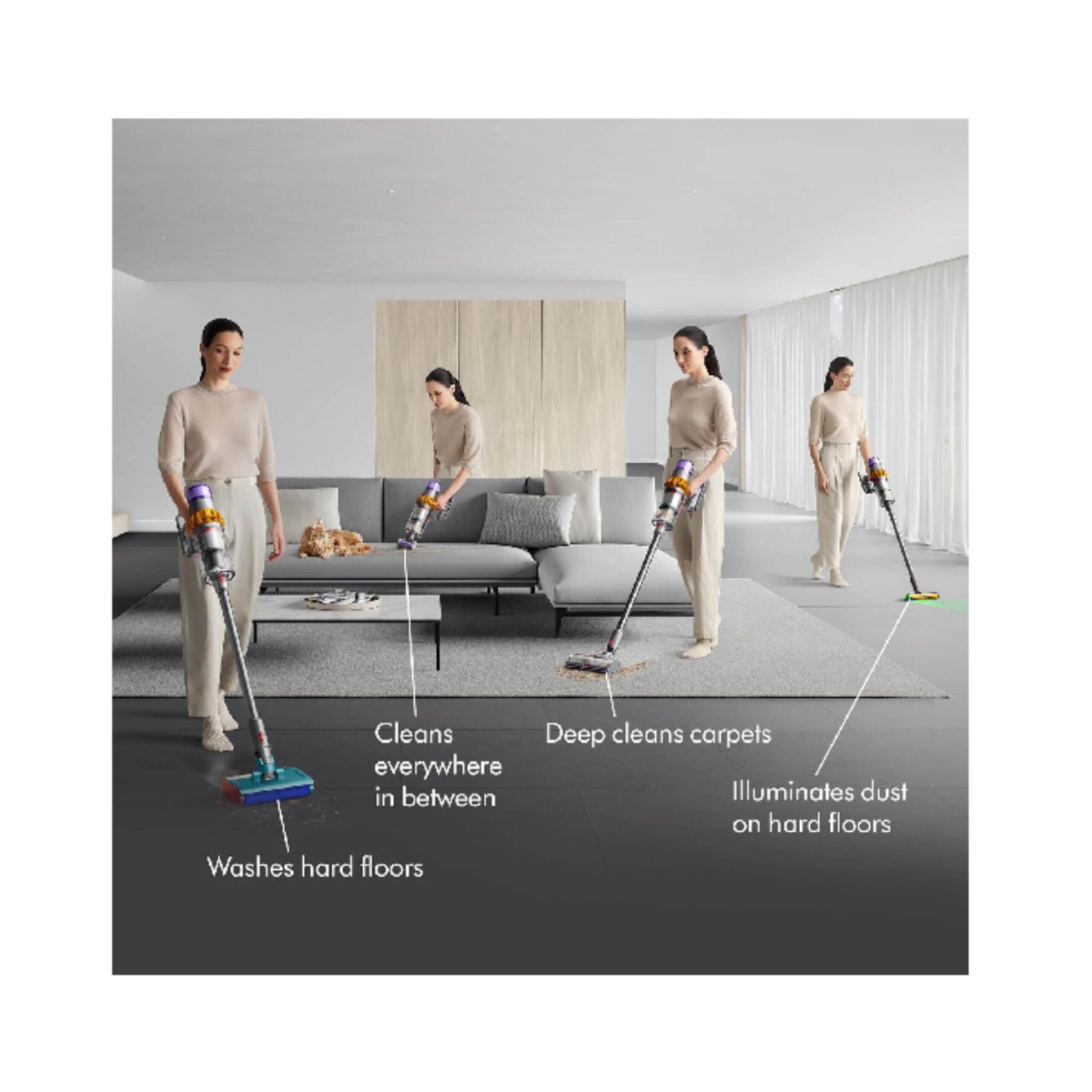 • Dyson Wash G1, ıslak ve kuru zemin temizliği için uygundur.