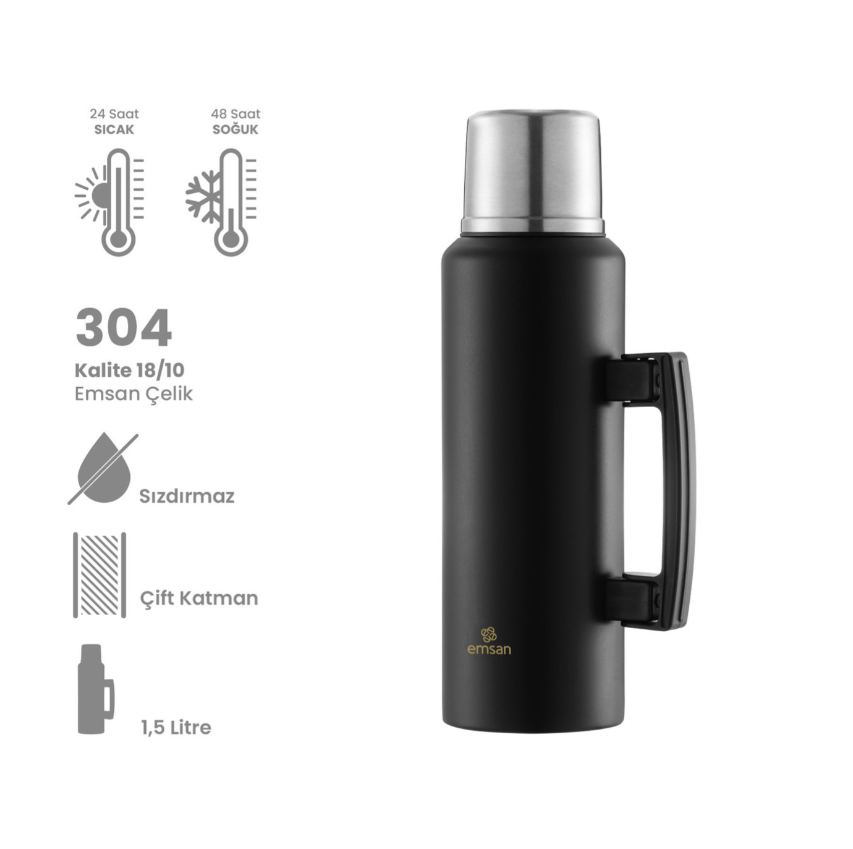 Emsan Camper Termos, 1,5 Lt, Siyah