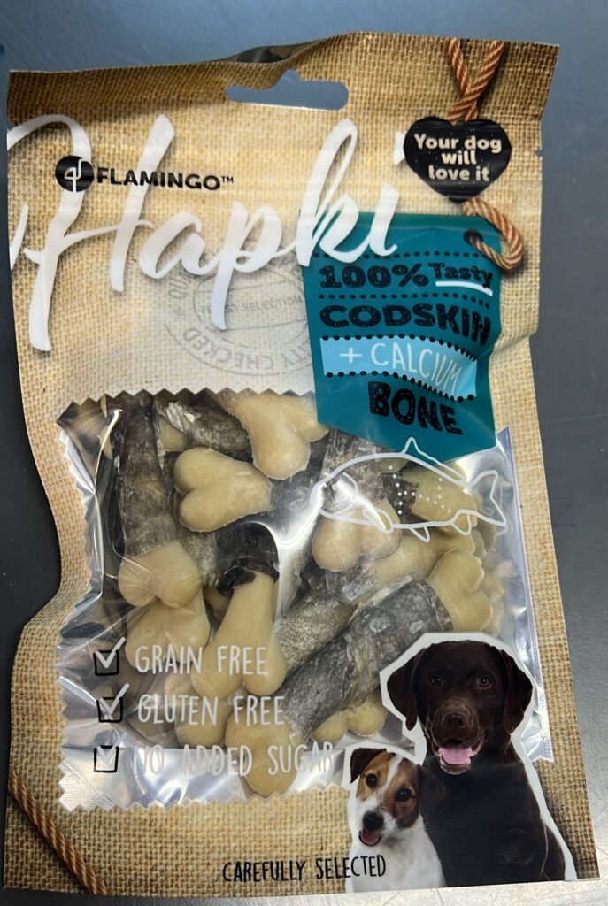 Flamingo Hapki, protein ve kalsiyumca zengin bir formülasyona sahiptir. Balık derisi içeriği sayesinde köpeklerin dermatojenik ihtiyaçlarını karşılar. Yapay renklendiriciler ve koruyuculardan arındırılmış, doğal içerikli bir seçimdir.