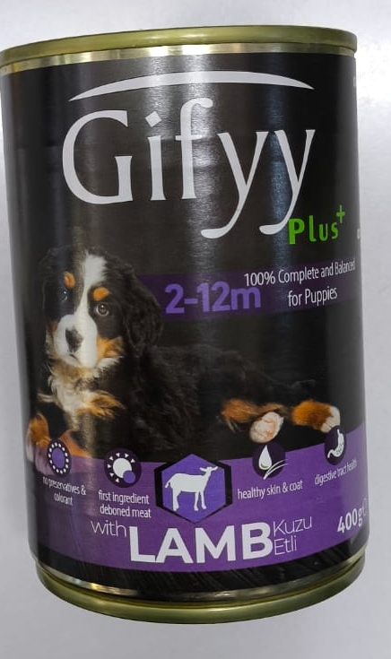 Giffy Parça Kuzu Etli Yavru Köpek Konserve 400g - Beslenme Uzmanı Tarafından Formüle Edilmiş Yaş Mama