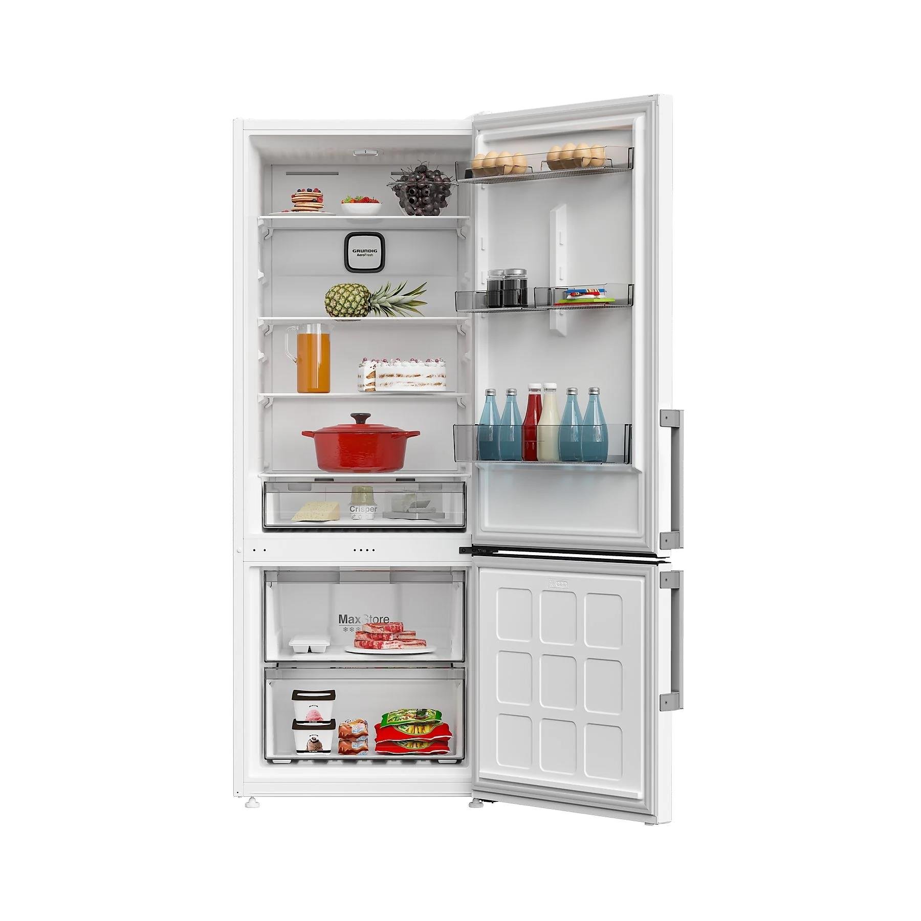 Grundig GPKNE 477 AeroFresh No Frost Beyaz Buzdolabı, 475 litrelik net kapasitesiyle hem geniş ailelerin hem de yiyeceklerini uzun süre taze tutmak isteyen kullanıcıların beklentilerine uygun şekilde tasarlanmış iki kapılı bir modeldir.