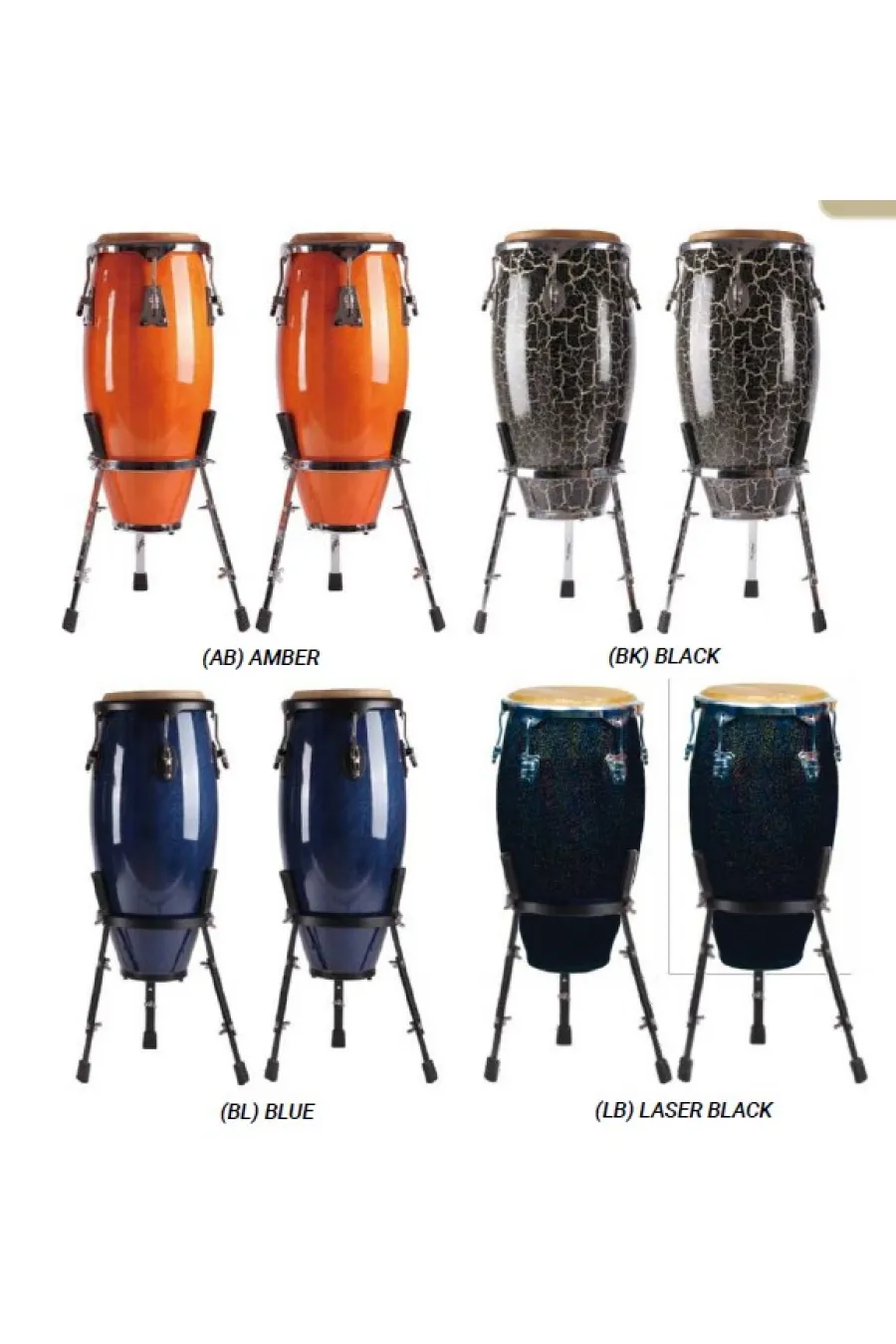 Conga seti 10 ve 11 inc. Siyah hardware. Dogal deri kafa. Renkler: Red, Sunburst