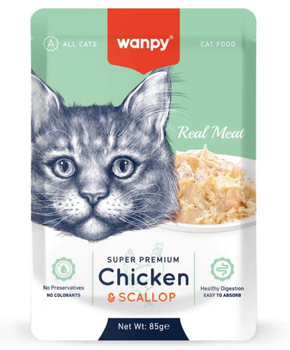 Wanpy Retort Pouch Chicken&Scallop For Cat 85gr - Premium Kedi Ödül Maması